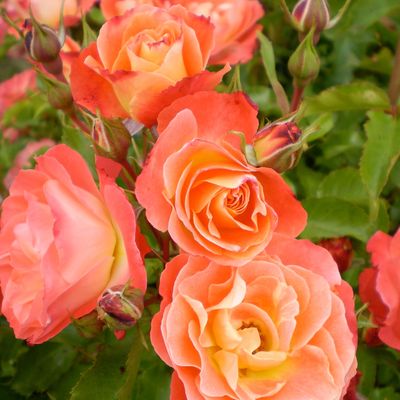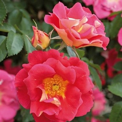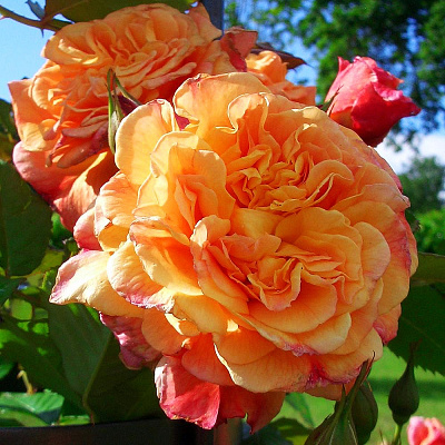 Клаймбер. Густомахровые, плотные сильно ароматные цветы, 9-10 см в диаметре, особенно волшебны в букетах. Окраску лепестков описать очень сложно, она меняется от времени суток и степени роспуска, но цветы всегда веселые и яркие, словно испускающие из себя оранжево-розовый цвет. Цветение в два длинных периода. Растения высотой 2,5-3 м, шириной до 1,5 м, с жесткими побегами, можно формировать в виде куста. Одинаково хорошо цветут при посадке на полном солнце или в полутени, способны переносить бедные почвы. Морозостойкость до -29°С, при обмерзании быстро восстанавливаются. Устойчивость к грибным болезням высокая, а к дождю просто отличная. Чаще всего используют для посадок вдоль стен. |