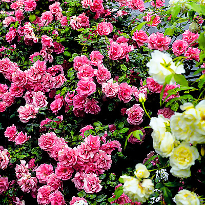 Рамблер. Это один из ярких представителей хамелеонов. С первой недели цветения лепестки сохраняют оттенок слоновой кости, однако совсем скоро, в результате воздействия солнечных лучей, они приобретают белоснежный цвет. Все цветки представлены в виде кистей. Одна кисть может содержать 50 цветков. Куст этого сорта плетистых роз редко когда вырастает в длину более 5 метров. Он способен переносить зиму даже без плотных укрытий, хорошо себя чувствует и в условиях высоких температур, также его можно без труда размножить методом черенкования. |