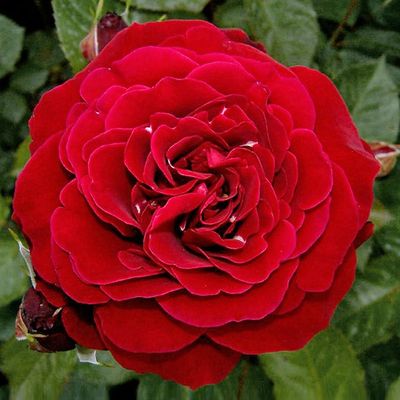 Клаймбер. Яркая, сильная, эмоциональная и энергичная, она не просто взбирается в гору, а достигает самых высоких и труднодоступных вершин. Цветки изысканно-элегантной формы, махровые, с потрясающе эффектной, насыщенной красно-малиновой окраской шёлковых, отливающих алым и тёмно-вишнёвым бархатом лепестков. Аромат приятный, довольно сильный. Цветёт непрерывно всё лето и осень, сохраняя отличную форму и красоту лепестков в любую погоду. Высота 250 см.