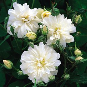 Клаймбер. Обладательница титула «Самая любимая роза в мире» в 2006 году. Лепестки белого цвета с нежнейшей розоватой каймой, расположены очень плотно, ведь в каждом цветке их до 150! Бутоны округлые кремовые. Цветки крупные 9-10 см, тяжелые, распускаются медленно, давая возможность налюбоваться ими в полной мере. Первое цветение несколько обильнее второго. Кусты раскидистые, высотой от 1,5 до 3 м, в зависимости от условий посадки. Сорт с замечательной устойчивостью к основным болезням роз и жаркой погоде, при затяжных дождях цветение страдает. Хорошо цветет при формировке на шпалерах и горизонтальном расположении побегов. Морозостойкость до -23-26°С. |