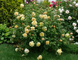 Колючим красавицам нравятся слегка кислые почвы с высоким содержанием гумуса. Основой грунта может быть суглинок. Хорошо при посадке уложить на дно ямы и присыпать землей перепревший конский навоз, который будет греть корни. Прямо в навоз кусты не сажают, чтобы не сжечь молодые корешки. Оптимальный состав земли: 1 часть глины + 1 часть песка + 3 части перегноя + 2 части торфа + 0,5 части древесной золы. Не помешает сразу внести специальное удобрение для роз.
