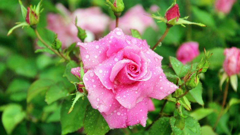 - Кусты роз следует поливать примерно раз в неделю, но в слишком жаркий период частота оросительных мероприятий может быть увеличена.