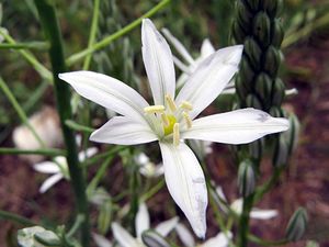 Птицемлечник (лат. Ornithogalum), или орнитогалум, относится к роду луковичных травянистых многолетников подсемейства Гиацинтовые семейства Спаржевые. В природе он произрастает в умеренных и субтропических зонах Средиземноморья, Южной Африки и Западной Азии. Всего известно около 150 видов растения. Англичане, из-за звездообразных цветков, называют птицемлечник «вифлеемской звездой», а немцы – «молочной звездой». Цветение птицемлечника наступает, в зависимости от вида, в период с начала по конец мая и длится около трех недель.