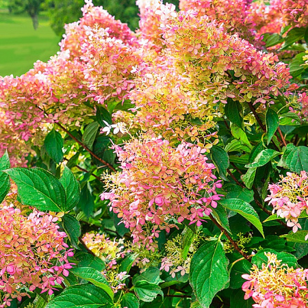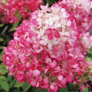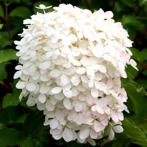 Сорт гортензии с крупными соцветиями-метелками, изменяющими свой цвет от белого к розовому и бордовому. Куст данного сорта гортензии вырастает до полутора метра в высоту. Период цветения чрезвычайно долгий – с июня по октябрь. Растение способно расти в полутени, морозостойкое (укрывать желательно в первый год), предпочитает влажные кислые почвы. Не переносит засух. |