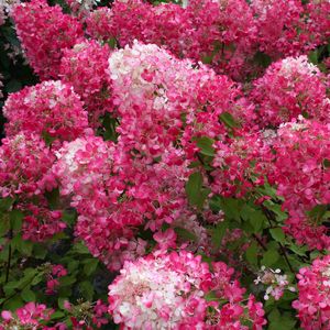 Куст с толстыми, практически не нуждающимися в опоре ветвями высотой до 2-х метров и крупными соцветиями бело-малинового цвета. Особенно эффектно смотрится резкий, контрастный переход малинового в белый. Как и большинство гортензий, морозоустойчива, любит влажные кислые почвы и полутень. |