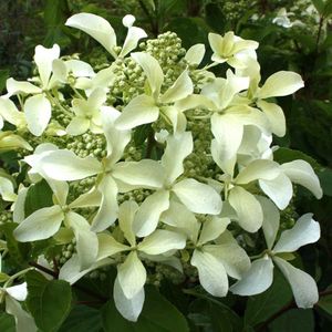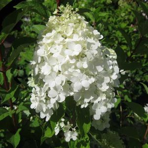 Обильно и продолжительно цветущий сорт. Цветение длится с июля по октябрь. Цветки растения сначала имеют зеленовато-белый оттенок, позже – белоснежный. Под их тяжестью сгибаются ветки гортензии. |