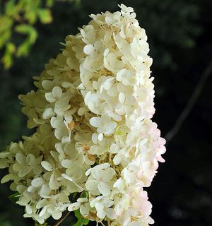 Этот сорт гортензии обладает самыми крупными из метельчатых гортензий соцветиями, окраскоторых меняется от светло-кремового до розоватого. Сорт гортензии Фантом характеризуется высоким кустом (около 2 метров), выносит полутень, очень зимостоек, предпочитает плодородные влажные почвы. |