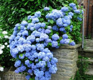 Сорт гортензий для любителей ярко-голубых цветов. Эта крупнолистная гортензия представляет собой невысокий куст около 1,2 метра с пышными круглыми соцветиями диаметром до 30 см. Вначале окрашены в бело-зеленый цвет, но со временем приобретают голубой и даже синий цвет. Лепестки соцветий гортензии Никко Блю мягко закруглены, что придает цветку воздушность и легкость. Морозостойкость довольно низкая, цветет на прошлогодних побегах, любит полутень. |