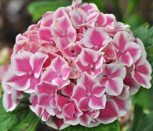 Гортензия крупнолистная, которая способна образовывать цветки на новой древесине, точнее, на побегах этого года так же хорошо, как и на побегах прошлого года, и обладающая высокой зимостойкостью. Куст высотой 60-75см, ширина 80 см. Крупные двухцветные цветки с розовой или синей серединой лепестков (зависит от pH почвы) и светлыми, почти белыми краями. На кислой почве цветки синие, на нейтральной и щелочной — розовые. В начале лета распускаются кисти на побегах прошлого года, а затем вас порадует соцветия текущего года. Для посадки подходит место с утренним солнцем и тенью в полдень с влажной и хорошо дренированной почвой. |
