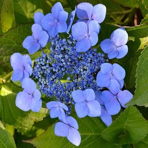 Простые немахровые светло-голубые цветы этой гортензии расположены очень плотно, за счет чего многочисленные соцветия выглядят пышными и тяжелыми. Цветение на побегах текущего года, начинается во второй половине лета и длится до серьезных заморозков. Кусты компактные, хорошо облиственные, аккуратные. При условии сохранения основных ветвей цветут даже после холодной зимы. Могут расти не только в открытом грунте, но и в контейнерах. Оживят внутренний дворик, террасу, вход в дом, станут изюминкой любого цветника. Это гортензия ремонтантная, она цветет на побегах текущего года. |