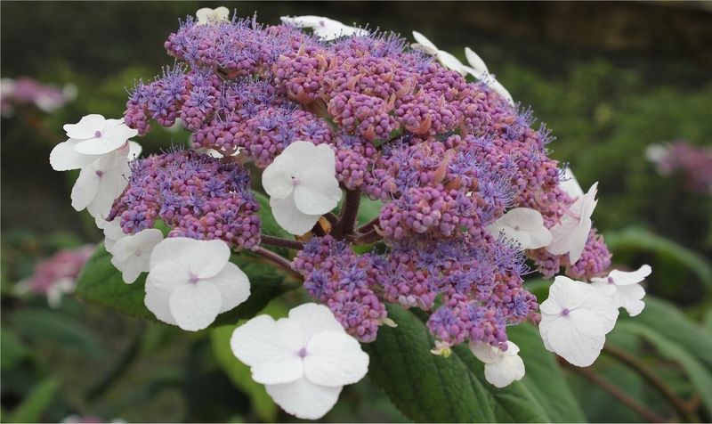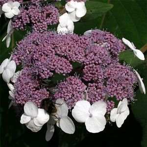 Зимостойкий сорт. Цветет на побегах прошлого и стеблях текущего года. Цветки махровые, внешне напоминают кувшинки. Цвет зависит от уровня кислотности почв. На кислом грунте цветы сине-фиолетовые, на щелочном – розовые. Собираются в щитки. Сорт имеет длительный период цветения: с июля и до самых холодов. |