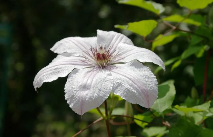 • Клематис "Мадам ле культр" – побеги 2,5-3 м длиной, листья простые или тройчатые, лопастные или цельные. Цветки диаметром 14-20 см, чашелистики белые, пыльники светлые, зацветают в июле. Зимостойкость средняя.