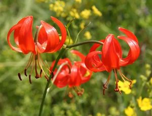 Карликовая лилия.Действительно маленькая лилия с тонкими листьями. Встречается на Дальнем Востоке, в Восточной Сибири, Монголии, северном Китае. Луковица белая, до 4 см в диаметре и б см высотой, с малочисленными широкими, плотно прилегающими чешуйками. Высота – 60-80 см. Соцветие рыхлое, грациозное, из 7-20 цветков. Ярко-красные чалмообразные цветки – до 4 см в диаметре, обладают тонким нежным запахом. Цветет в начале июня. Луковицы высокой зимостойкости, но недолговечны, распадаются с образованием нескольких мелких деток на 3-4-й год выращивания. Легко размножается семенами, зацветая уже на 2-3-й год. Растет на любых дренированных почвах, очень зимостойкая и засухоустойчивая, не болеет.