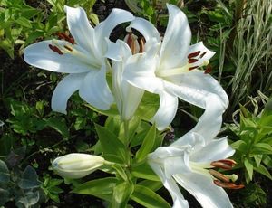 Лилия Регале (царственная, королевская или тибетская) в цветоводстве получила особенно немалое значение. Растения данного вида вырастают высотой до двух метров. Цветут они в июле. Цветки трубчатой формы белой окраски с желтыми горлышками достигают 15 сантиметров в диаметре и обладают приятным нежным запахом. Отлично завязывает семена, которые очень легко всходят. Цветение сеянцев можно наблюдать на второй год. Данная лилия в выращивании также достаточно неприхотливая, однако высаживать ее необходимо на солнечных местах, защищенных от ветров. Зимой ее надо укрывать. Селекционеры вывели множество других гибридов, отличающихся от лилий Регале окраской цветков и лучшей стойкостью к зимам.