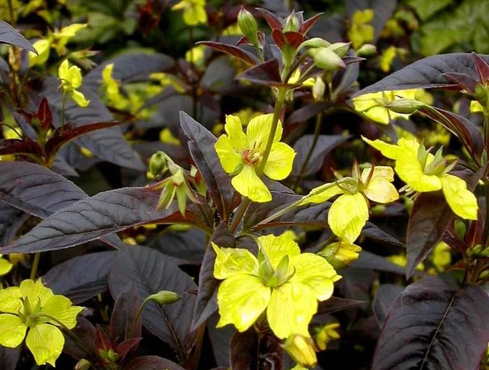 • Персидский шоколад – вербейник с пурпурной листвой, не отмирающей осенью, и золотисто-желтыми цветками.