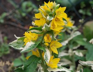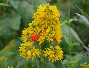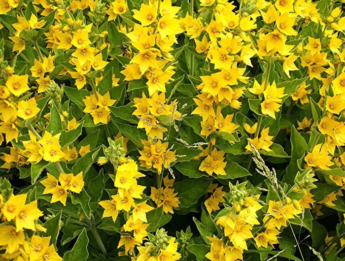 Это вербейник желтый – так он выглядит из-за обилия золотисто-желтых цветков с красным мазком у основания лепестков. Листва у растения сочная и густая, ярко-зеленого цвета. Этот вид стал известен не так давно – в 1992 году. Лучшие сорта этого вида:
