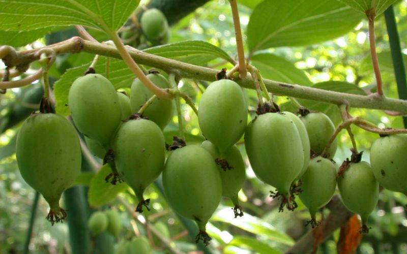 - Актинидия Киевская Крупноплодная – сорт позднего созревания с крупными овальными ягодами зеленого цвета весом до 10 г с нежным сладким вкусом.