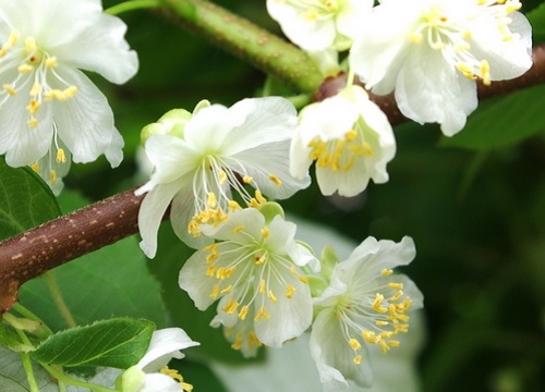 Актинидия – двудомное растение, представленное как женскими, так и мужскими экземплярами. Пол актинидии можно определить только во время первого цветения растения по строению цветков. У цветков мужской актинидии при наличии множества тычинок нет пестика. Цветочки растут пучком, по 3 соцветия.