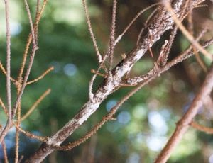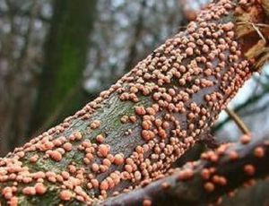 Первым признаком является появление красно-бурых бугорков у основания веток.