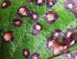 Септориоз (или белая пятнистость) на смородине - это заболевание, вызываемое грибком, живущим на опавших листьях. На молодых листьях появляются пятна бурого цвета, с развитием которых в центре пятнышка появляется белая точка, которая разрастается, и со временем остается белое пятно в красном обрамлении.