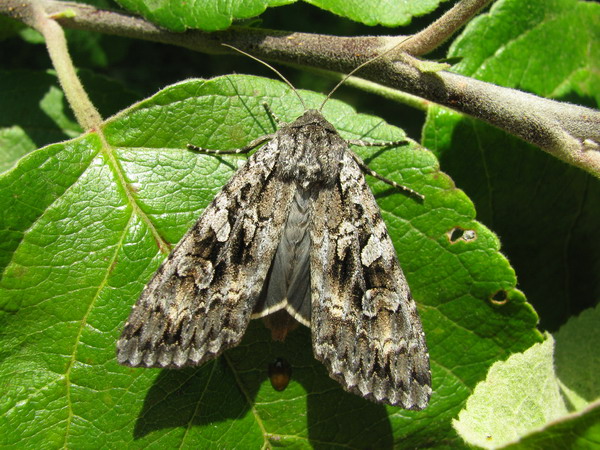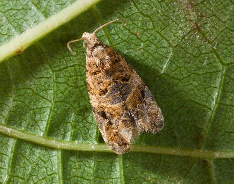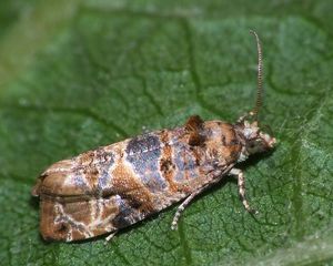 Бабочка с размахом крыльев около сантиметра. Передняя пара крыльев желто-серая со сложным рисунком, задняя пара крыльев серого цвета. Гусеница длиной сантиметр оливково-зелено-серого цвета со светло-коричневой головой.