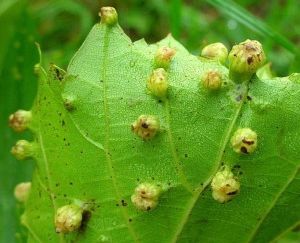 Селится на нижней стороне молодых листьев. К маю в результате деятельности клеща на верхней стороне листьев обнаруживаются выпуклые образования. Если их разрезать, то внутри можно найти белый или бурый «пух».