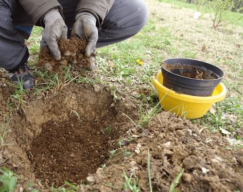После того как место посадки определено, примерно за две недели до пересадки, необходимо вскопать участок (выбирая из земли сорняки, камни, мусор и старые корни) на глубину примерно 40 см с внесением удобрений на 1 м2: