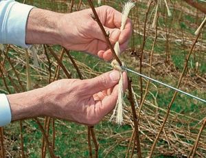 Если с весны ведется грамотный уход за малиной, урожай обычно получается обильный. В этом случае побеги могут не выдержать тяжести ягод и полечь. Чтобы этого не произошло, стебли подвязывают. Занимаются этим в середине лета, когда заканчивается рост растения и оно входит в пору цветения. Побеги подвязывают к опоре (например, шпалере), когда они достигают примерно 50 см. Это первая подвязка. Вторую проводят, когда они вырастают на 1–1,5 м. Тогда во время раскачивания ветвей от ветра ягоды меньше страдают. Важно! Важно следить за тем, чтобы малинник не загустел. Именно в густых ветвях, которые недостаточно проветриваются, начинают размножаться грибки. Поэтому кусты обычно высаживают полосами с расстоянием в метр. При использовании шпалер ширина может составлять 20-35 см.