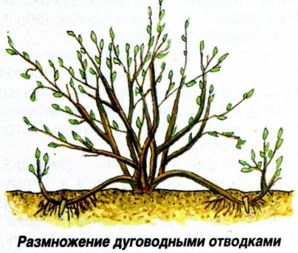 Дугообразные отводки. Подходит для белой и красной смородины. Для размножения черноплодных сортов практически не используется.