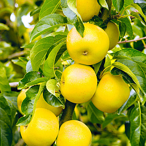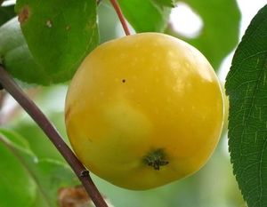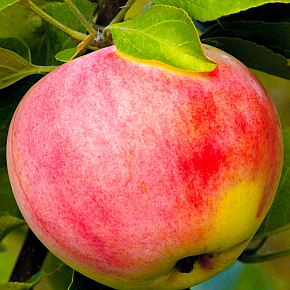 Очень красивое «райское яблочко», невероятно соблазнительное, так и хочется попробовать. Плоды округлые, средние по размеру, массой 80-90 г (отдельные до 120-140 г), золотисто- жёлтые, сплошь залитые густым алым румянцем. Мякоть кремовая, сочная, скалывающаяся, великолепного кисло-сладкого вкуса. Созревают в конце августа и отлично хранятся в течение месяца. Дерево среднерослое, с обильным ежегодным плодоношением, хорошо зимует.