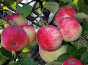Основное достоинство этого сорта — скороплодность. Уже в первый год после посадки можно наслаждаться сладкими сочными яблоками отличного десертного вкуса. Плоды довольно крупные, массой до 140 г. Сорт настолько урожайный, что к осени ветви просто усыпаны красными яблоками. Плоды созревают в конце сентября и прекрасно хранятся до весны.