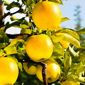 Восхитительно красивый позднелетний сорт в полной гармонии с тёплой солнечной негой щедрого лета. Яблоки очень нарядные, крупные, до 180 г и более, с алым румянцем, укрывающим почти полностью золотисто-жёлтые, будто напоённые солнцем, плоды. Мякоть кремовая, нежная, мелкозернистая, ароматная. Вкус отличный, сладкий с приятной свежей кислинкой. Дерево слаборослое с ажурной пирамидальной кроной.