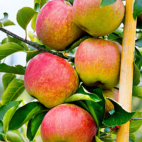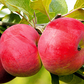 Удивительно красивая яблонька. Стройная двухметровая крона, обильно увешана крупными (150-200 г) плодами с нарядным ярко-красным румянцем. Урожай со взрослых растений достигает 15 кг. Созревают яблоки в сентябре, но вполне могут храниться до февраля. Мякоть ароматная, чуть розоватая, сочная, кисло-сладкого десертного вкуса. Плоды едят свежими или перерабатывают на сок, варенье, джем, подходят они и для сушки. Сорт зимостойкий, мало поражается болезнями.