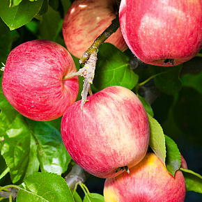 Новый, завоевывающий все большую популярность, зимний сорт яблони. Деревца у него не очень высокие, с округлой кроной, которая прекрасна и в период цветения, и во время сбора урожая. Плоды при достаточном количестве питания и влаги в почве вырастают крупными оранжево-красными с сочной и твердой, очень вкусной мякотью. У них непередаваемый освежающий вкус и приятный аромат.