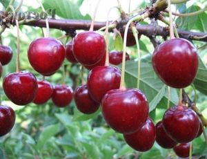Для этого сорта вишни характерна крупноплодность и отличная зимостойкость, к тому же он рано начинает плодоносить. Первые ягоды, идут по весу до 6,5 грамм и наливаются к середине июля. Кусты невысокие, не требующие постоянного прореживания, так как их крона не особо загущена. Поверхность плодов вишни покрыта алого цвета кожицей, под ней находится несколько кислая, но очень сочная мякоть. Урожайность с одного куста порядка 15 килограмм.