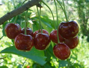 Эта красавица-вишня, благодаря самоплодности и поздним срокам цветения, не попадающим под возвратные заморозки, высокой зимостойкости отличается ежегодным обильным урожаем, хотя и поздним, но таким желанным. Плоды небольшие, 2,5-3 г, насыщенно-тёмно-красные, с нежной и сочной сладко-кислой мякотью. Не только продлевает сезон спелой вишни, но и даёт последнюю возможность для заготовки вкусных компотов и замечательных варений. Куст компактный, высотой до 2,5-3 м.