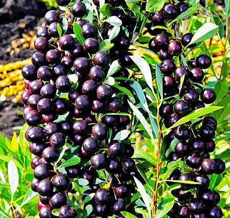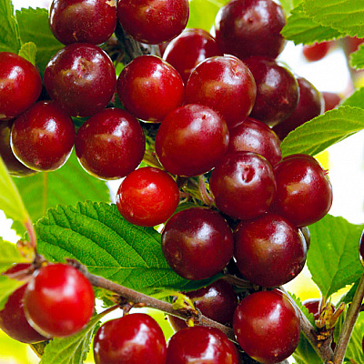 Деревья компактные, не выше 2 м, с отличной морозостойкостью, самоплодные, стойкие к болезням и вредителям. Ягоды огромные, рубиновые, по мере созревания цвет темнеет, у полностью спелых плодов он уже почти черный. Вкус сладкий, без терпкости, темно-красная сочная мякоть содержит 14% сахаров. Косточка гораздо меньше, чем обычно у вишни. Плоды идеальны для сока, варенья, разнообразной выпечки, годятся для заморозки и засушивания. Урожай созревает в августе, но плоды не осыпаются еще долгое время. Урожайность достигает 10-15 кг.