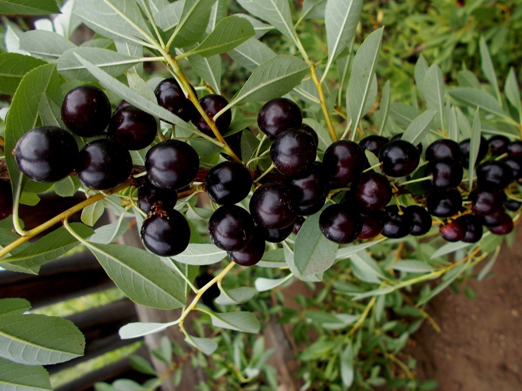 Ягоды Бессеи округлые, крупные, темно-бордового цвета. Мякоть зеленоватого цвета с темно-красными прожилками. По сравнению со своей дикой родственницей, такие плоды очень сочные и сладкие. По своему вкусу имеют схожесть с черноплодной рябиной, отличаются наличием легкой терпкости.