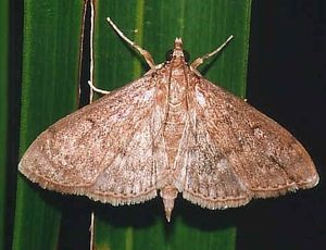 Это бабочка, размах крыла которой составляет 13-16 мм. Отличить ее можно по расцветке крылышек: передние желтовато-бурые, задние коричнево-серые, бахромчатые. Гусеница этого вида бородавчатая со светлой опушкой. Она меняет свой окрас в зависимости от возраста (красная, затем коричнево-желтая, а перед окукливанием становится буро-зеленой).