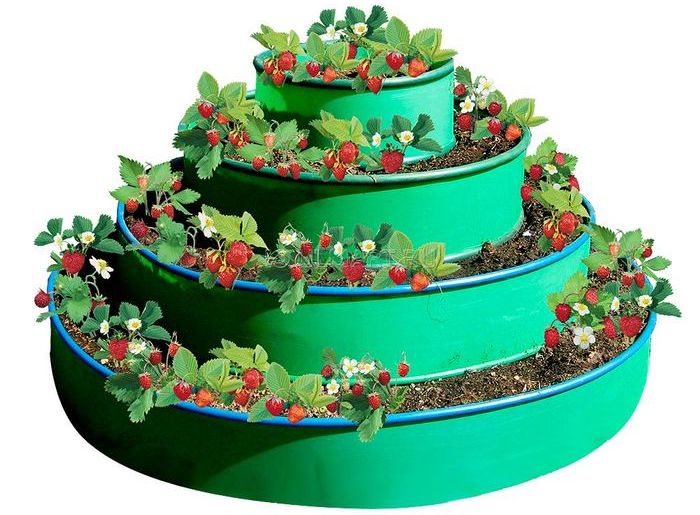 Грядка в виде пирамиды идеально подходит для выращивания клубники, любой зелени или низкорослых цветов как на открытом участке сада, так и в теплице. Этот способ посадки растений относят к вертикальному выращиванию, так как кустики практически высаживаются друг над другом.