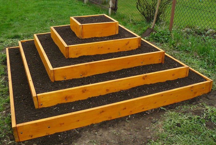 Кстати, сейчас в продаже появились готовые грядки-пирамиды. Они могу состоять из разного количества ярусов. Вам придется лишь установить конструкцию, наполнить ее почвогрунтом и высадить растения.