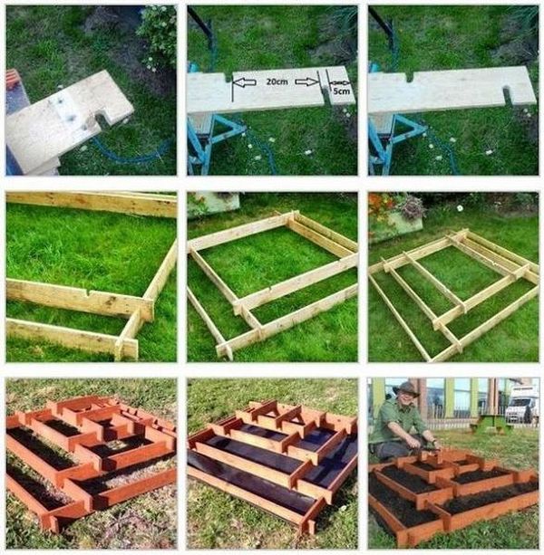 Вот еще один вариант изготовления четырехугольной грядки-пирамиды: